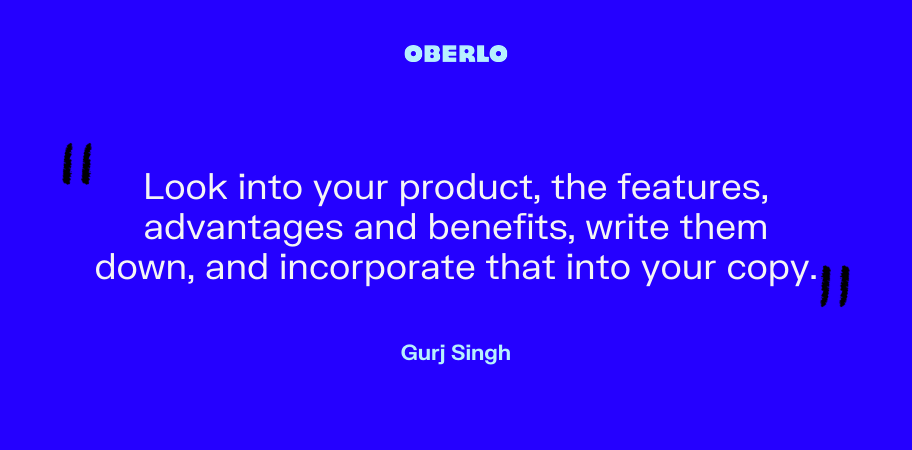 Gurj:Start from scratch.You wanna essentially look into your product, look at what the features, advantages and benefits are, write them down, see how you can incorporate that into your copy.You wanna outline the different ways a product would solve a problem for a customer.