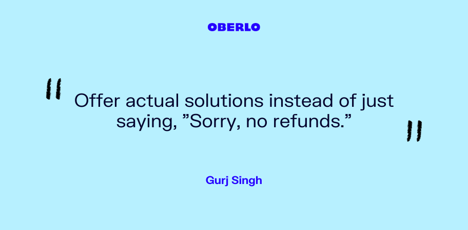 Gurj:Sure, so getting back too quickly is huge.Offering actual solutions instead of just saying, "Sorry, no refunds,"or, "Once you get the product, ship it back." Whatever it is.