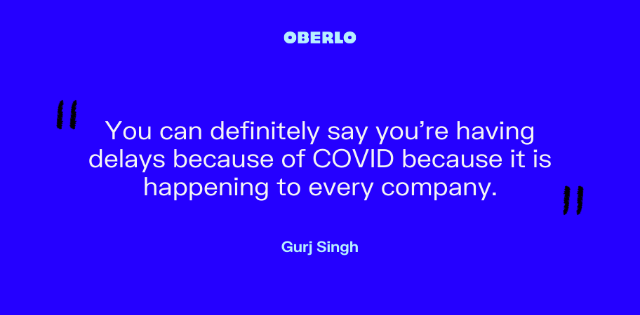 Gurj:For sure. And you can definitely just put you're having delays because of COVID because it is happening to every company. Like I bought Jordans from Foot Locker and normally, Foot Locker's two to three days. But right away they sent me an email, "Expect delays because of COVID," and it took over a week.