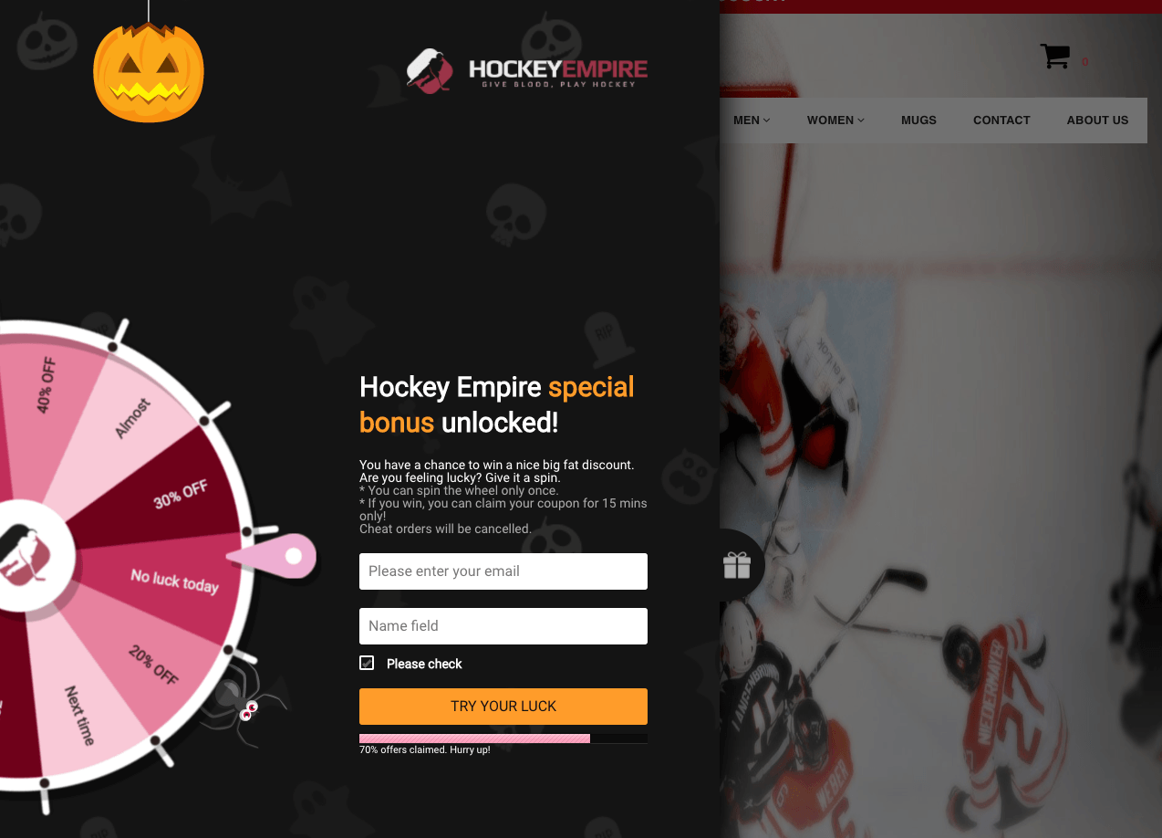 你可以从Shopify的应用商店安装应用程序,比如Wheelio,在上面的例子中使用,这将集成一个出口弹出直接到你的电子商务商店。