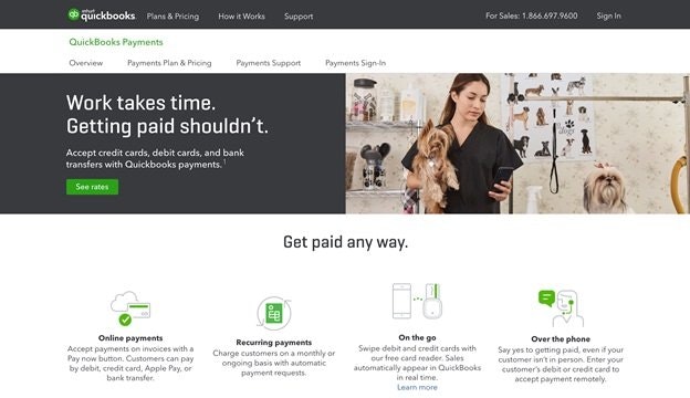 - Quickbooks支付最适合需要专业会计工具的自由职业者和其他小型服务型企业。