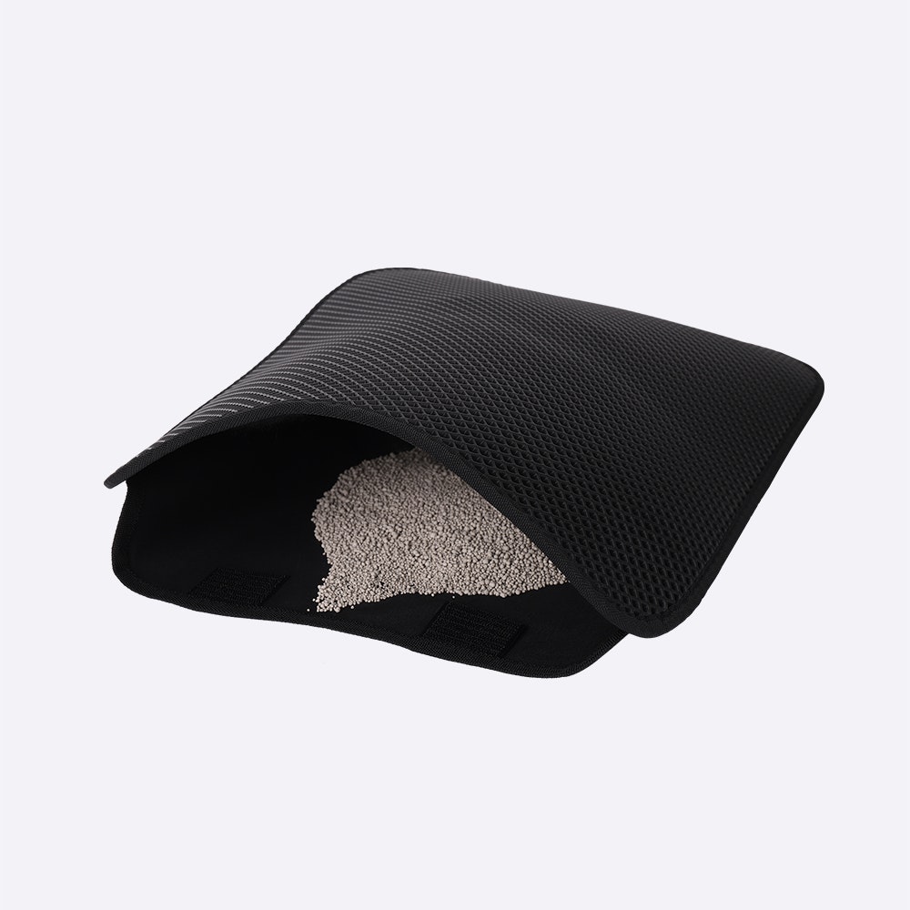 将本产品放在猫砂盘旁边,任何散落的猫砂都会掉进垫子内的防水口袋里。