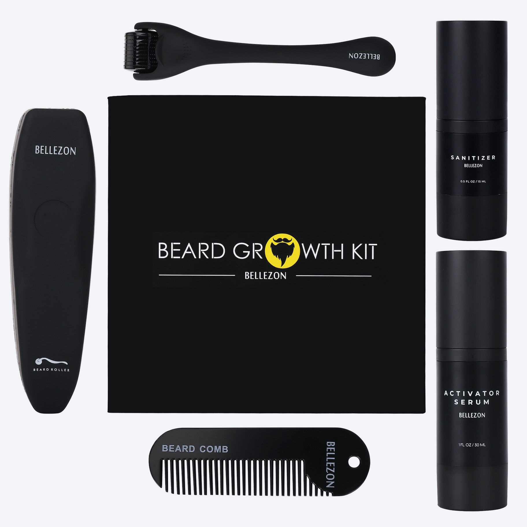 在这一套中,你会发现一个真皮辊,消毒喷雾,胡子激活血清,和胡子梳。