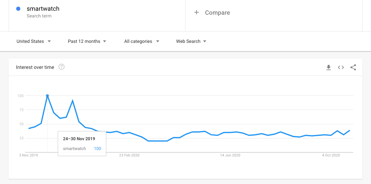 检查谷歌趋势数据,你会看到对这些产品的搜索在11月有一个巨大的高峰,然后在12月再次出现。