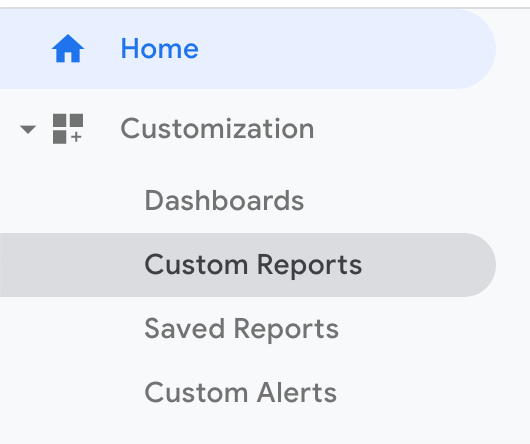 - 点击谷歌Analytics左侧工具栏中的自定义报告。