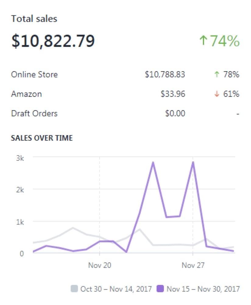 “Shopify应用快疯了!”杰克回忆道。到周末结束时,他们已经获得了5,460.88美元的销售额。这些钱帮助他们收回了测试产品所花的钱,也为他们进一步扩大业务提供了大量资金。