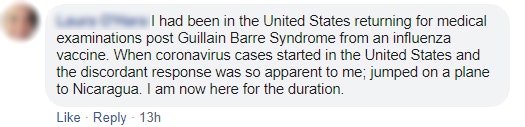 还有这个曲线球:一个美国人在看到大流行变得真实时,实际上从美国逃到了尼加拉瓜。