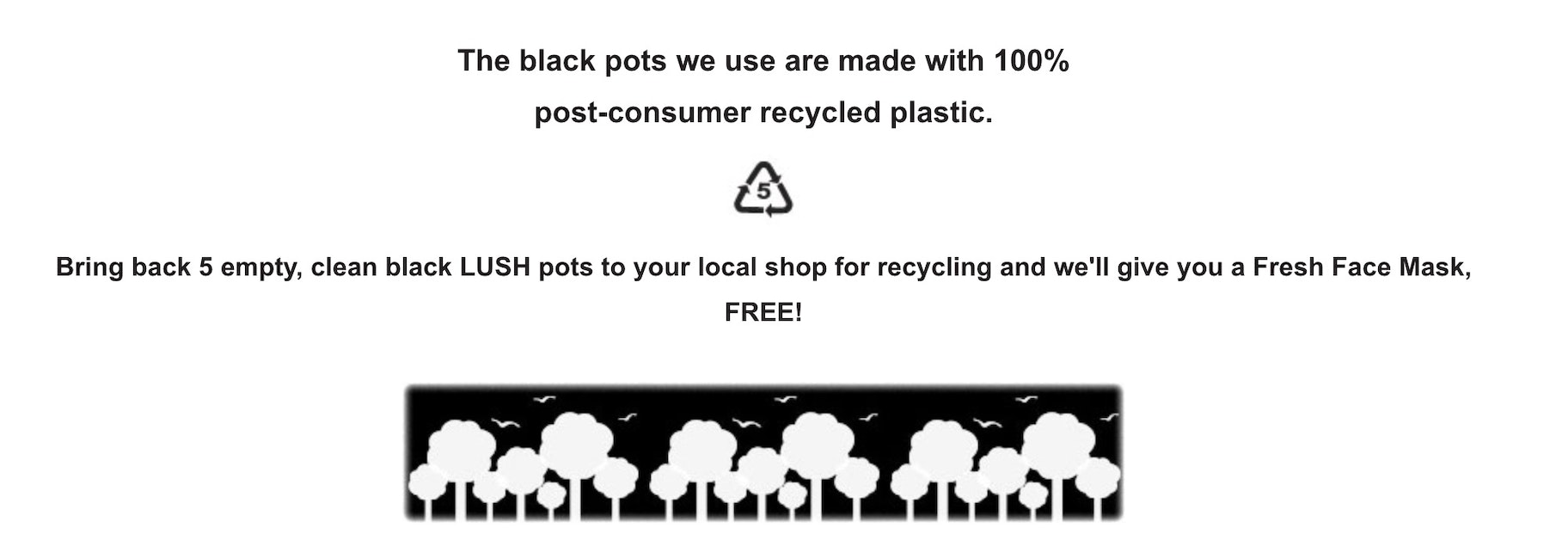 每当人们把五个罐子还给LUSH时,他们会给你一个免费的面膜,你可以当场带着,他们会为你回收罐子。