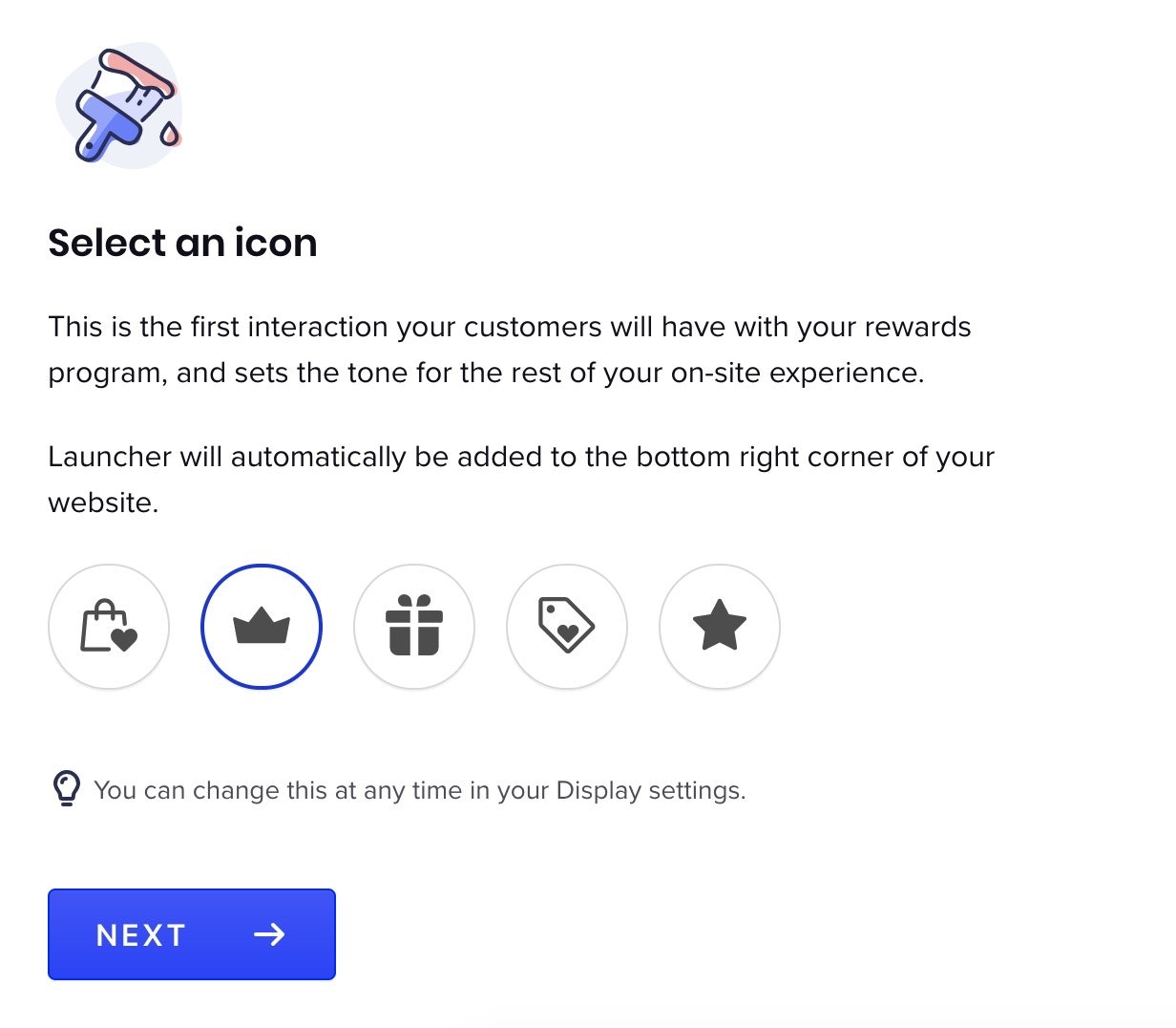 接下来,你需要为你的客户忠诚度计划选择一个图标。这将是公开的,并将出现在你的商店的右下角。