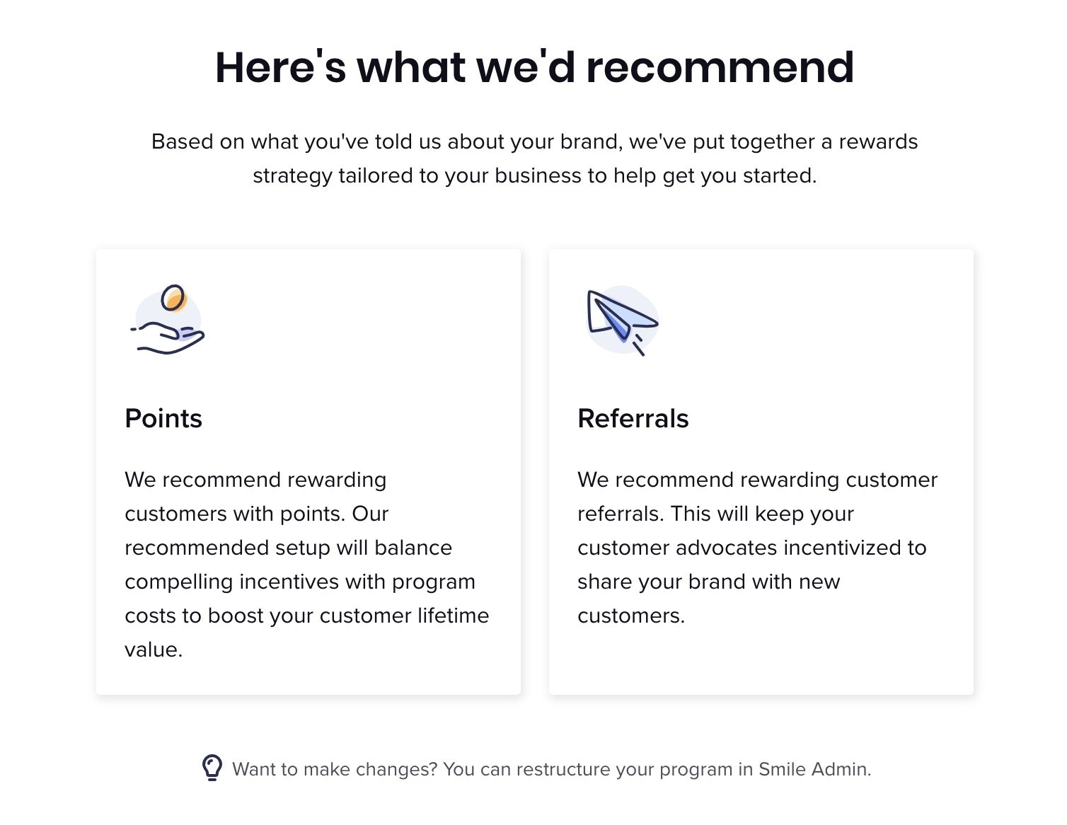 Smile会给你一个快速的推荐,告诉你哪种类型的客户忠诚计划最适合你的品牌。