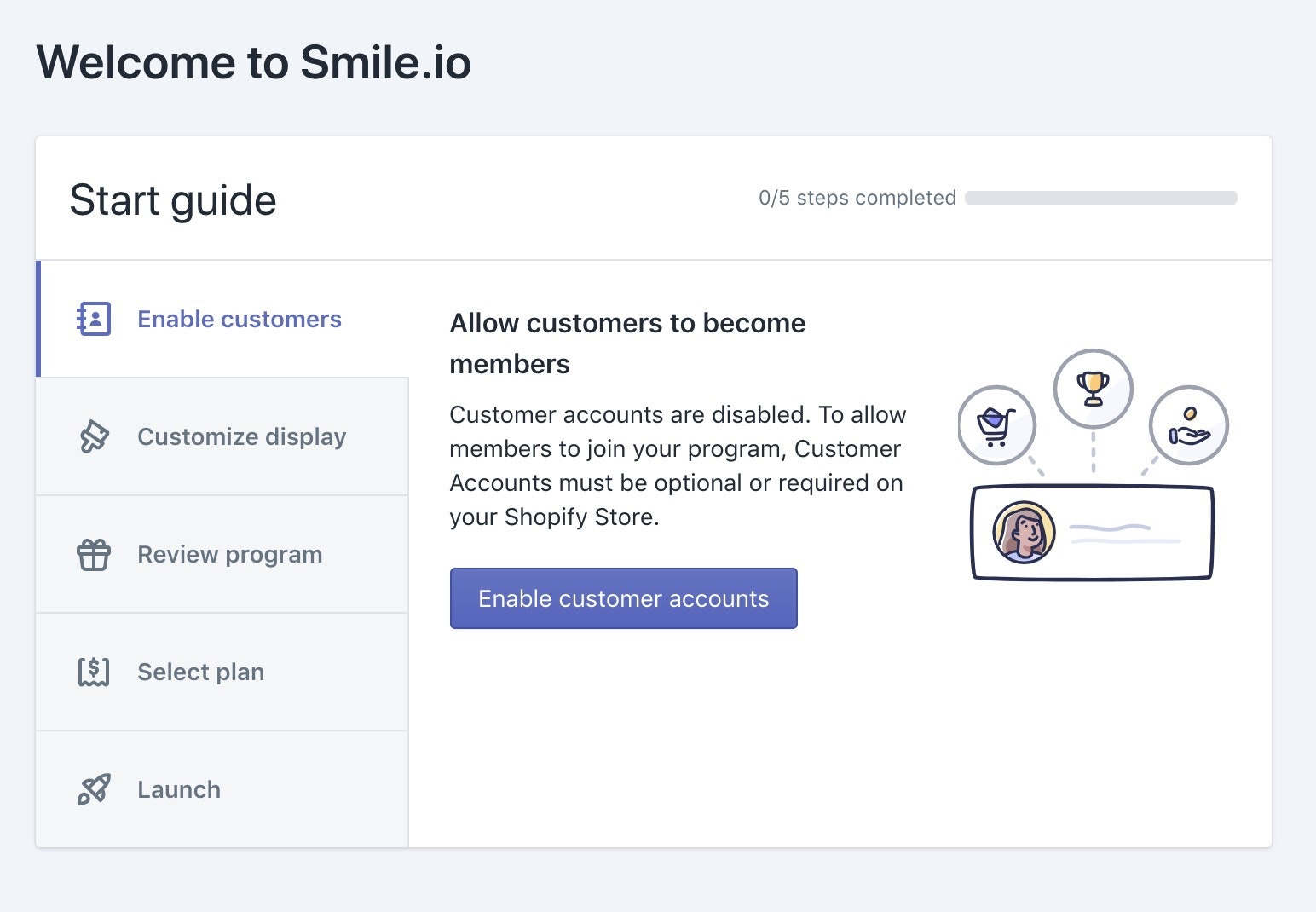 当你完成了Smile的入门指南中的五个步骤后,你的客户忠诚度计划将会启动——祝贺你!
