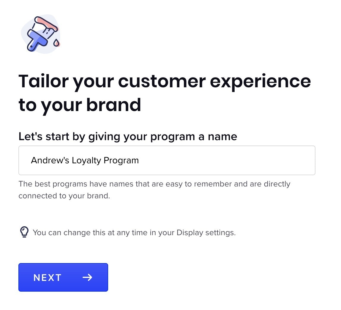你需要为你的客户忠诚度计划起一个名字。不过,一开始不要担心找不到完美的名字——以后你可以在Smile设置中更改忠诚度计划的名称。