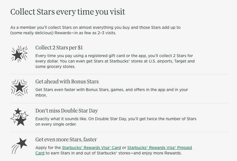 从上图中你可以看到,星巴克使用了巧妙的图形和简单的文案,以确保人们知道如何最大限度地利用他们的客户忠诚度计划。
