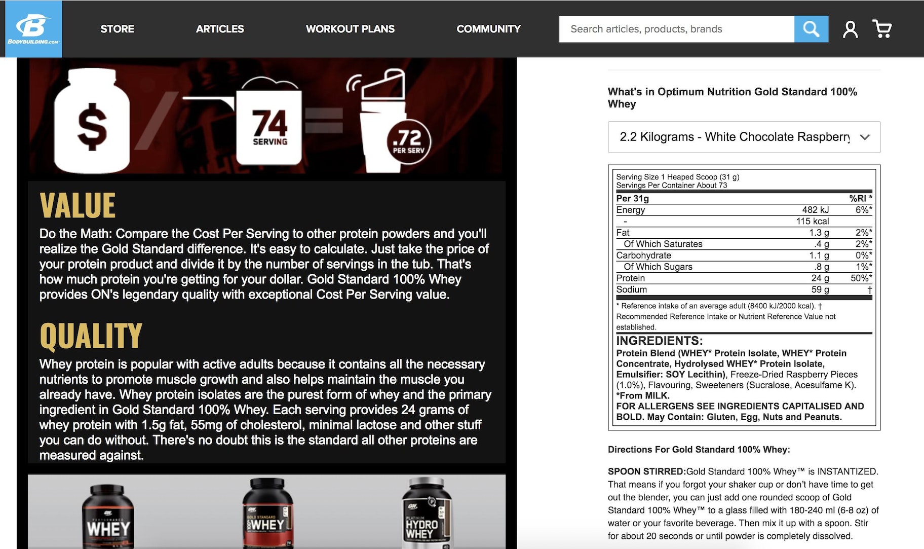 有些公司,比如Bodybuilding.com,创建包含大量信息的综合产品页面,如下面的片段所示: