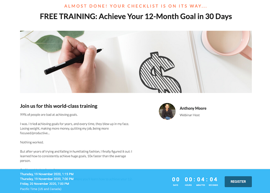 记住,这是一个数字游戏。自动网络研讨会是一个很好的赚钱工具,值得优先考虑这种模式,并尝试让尽可能多的人注册。