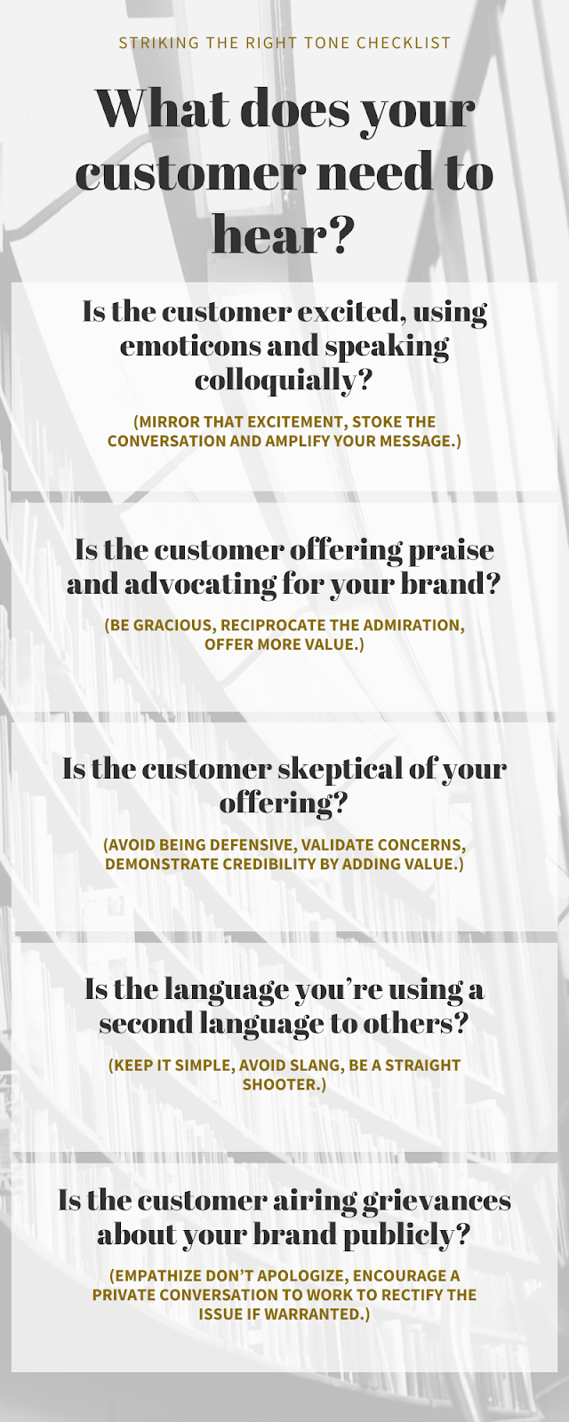 在社交媒体客户服务中,你总是在公众赞扬或公众批评的边缘徘徊。正确的语调取决于你的听众、平台和你的理想客户。
