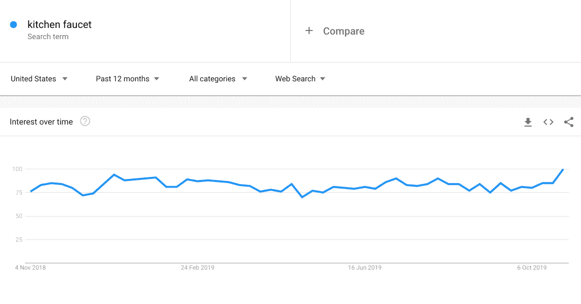 例如,让我们看看有多少人在b谷歌上搜索“厨房水龙头”这个短语: