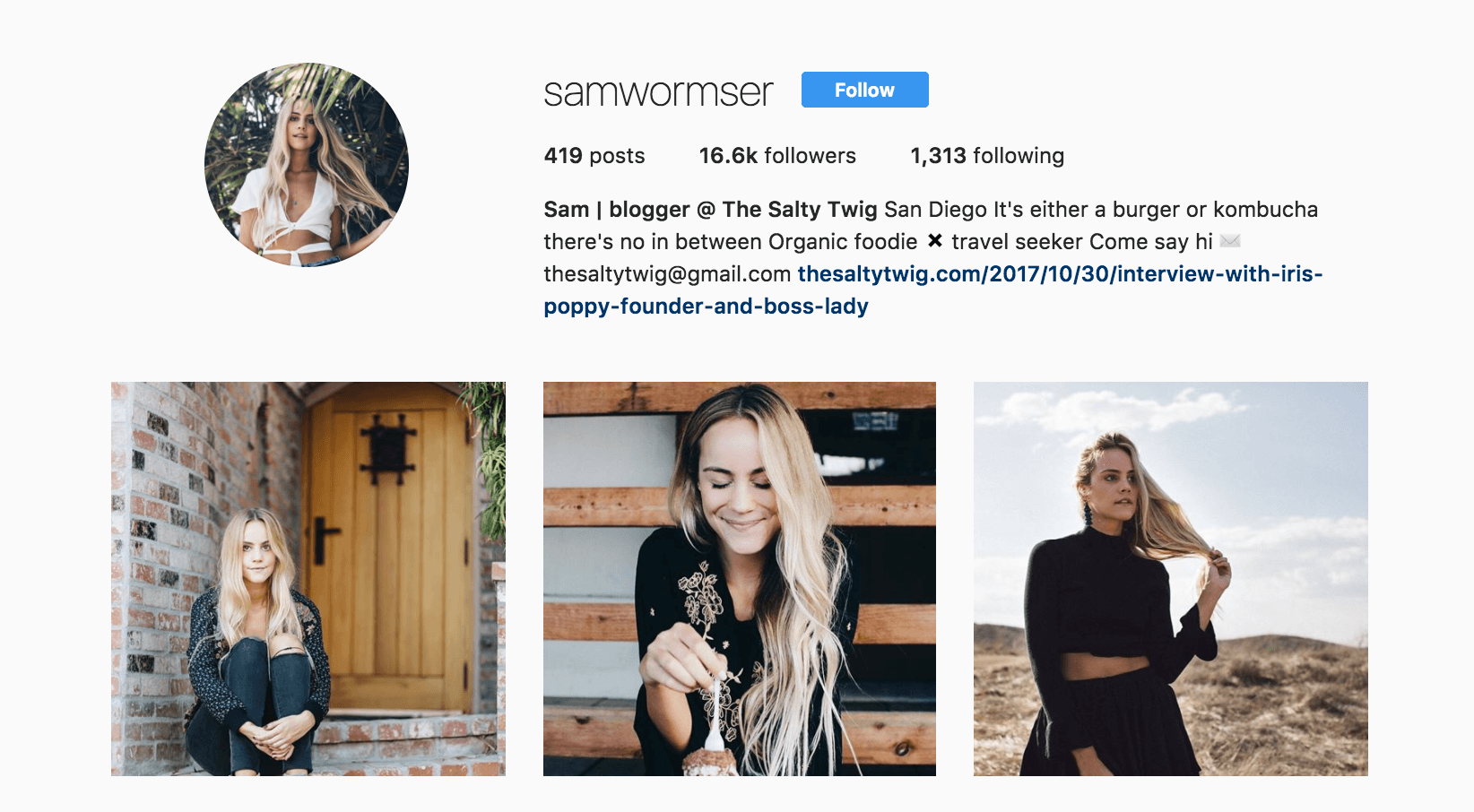 萨曼莎·沃姆瑟,博客作者咸树枝她在Instagram上积累了超过1.6万名粉丝。她在Instagram上分享了这个故事。”我喜欢Instagram上的故事,也最常使用这个功能。我试着张贴Instagram的故事每天,因为这是一个很好的方式来吸引人们到我的个人资料和博客,增加参与度,并展示更多的幕后生活。我也喜欢看Instagram上的其他故事,因为它让我得以一窥人们的生活,这些生活没有经过编辑或编排,而是更真实。到目前为止,我最喜欢的功能是为商业账户提供Instagram故事中的链接机会。作为公关人员,我知道与有影响力的人合作是多么重要,他们有能力链接并能够在谷歌分析中查看通过该链接在客户端产生的流量和转换。在影响者方面,你在故事中通过链接和标签品牌获得的洞察力向你展示了有多少人点击了链接,这样你就能更好地了解你为品牌产生了多大的影响,如果我链接到一篇博客文章(另一种方式我为我的博客带来流量),那么我就能看到有多少人点击了我故事中的链接。”
