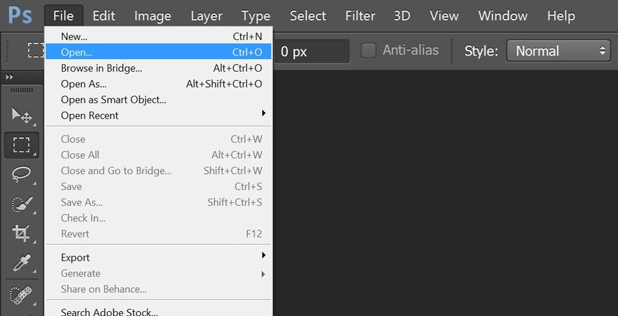 1.在the menu, click File → Open. Choose the image you want to resize.