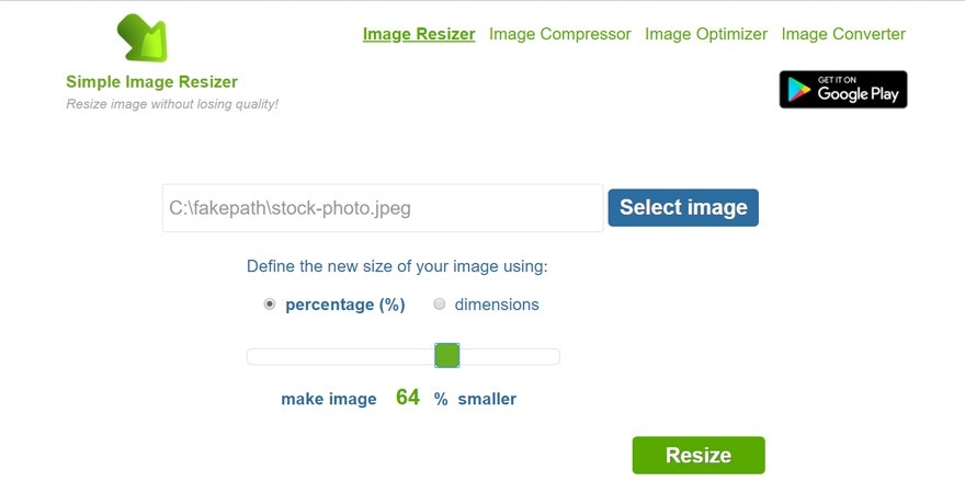 当他们将其命名为“简单图像调整器”时,他们并没有撒谎。要使用该工具,请选择一个图像,选择是否要根据尺寸(像素)或百分比调整大小,选择像素或百分比,然后单击“调整大小”。