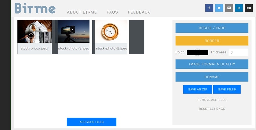 B.I.R.M.E.代表“批量图像调整变得简单”。这个批量图像调整器可以帮助您一次调整多个图像的大小,而不是逐个调整。您还可以为每张照片添加边框。只要选择你想要多少像素的厚度。