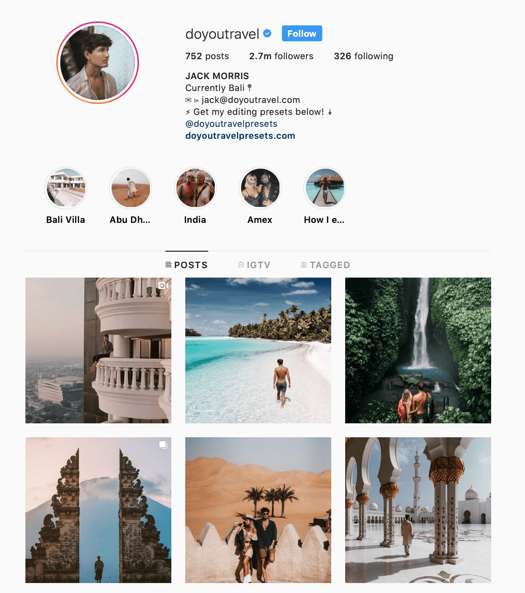 由于自然和摄影在Instagram上是巨大的利基市场,所以旅游在该平台上也非常受欢迎也就不足为奇了。以下是Instagram上最具影响力的几个旅游网红。