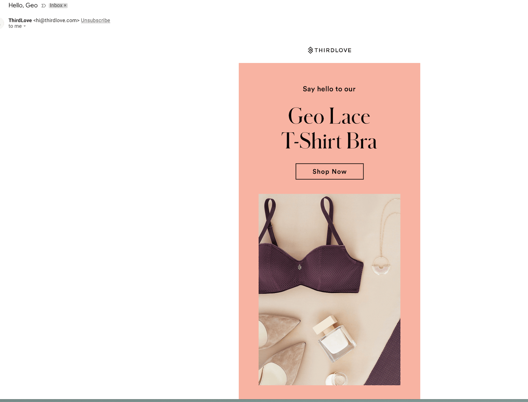 ThirdLove是一家内衣公司,一直有强大的营销活动,自从他们刚开始。他们的产品发布活动都很扎实。每次新产品上市时,他们都会给客户群发一封电子邮件,解释新产品是什么,如何穿着,以及他们为什么需要它。
