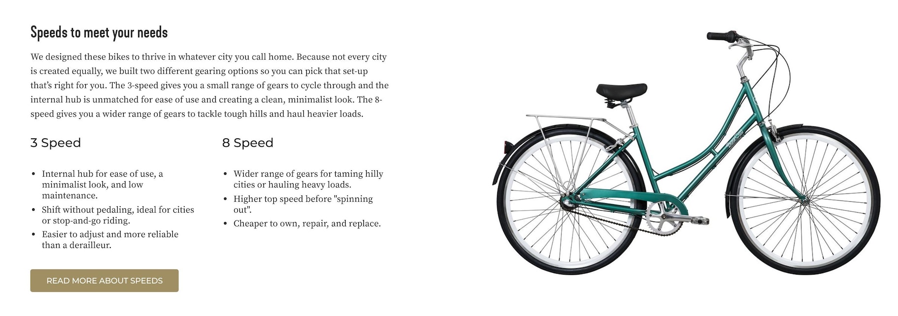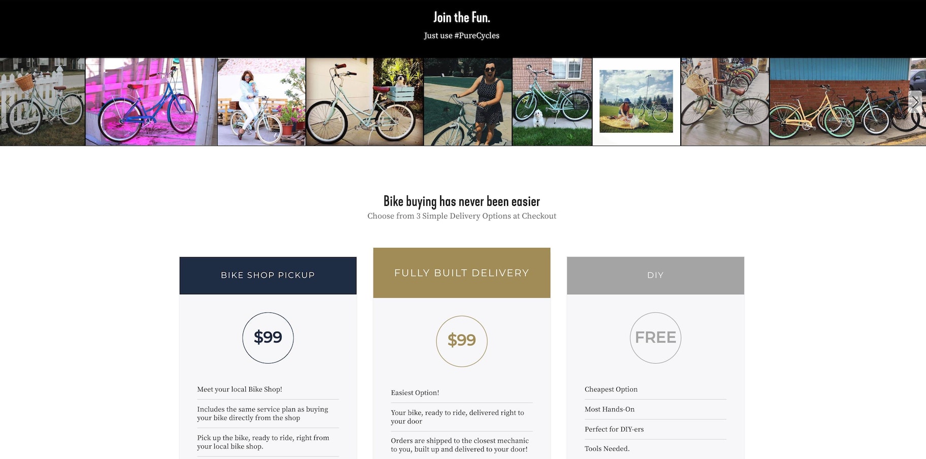 自行车制造商Pure Cycles在他们的产品页面中加入了很多漂亮的元素。