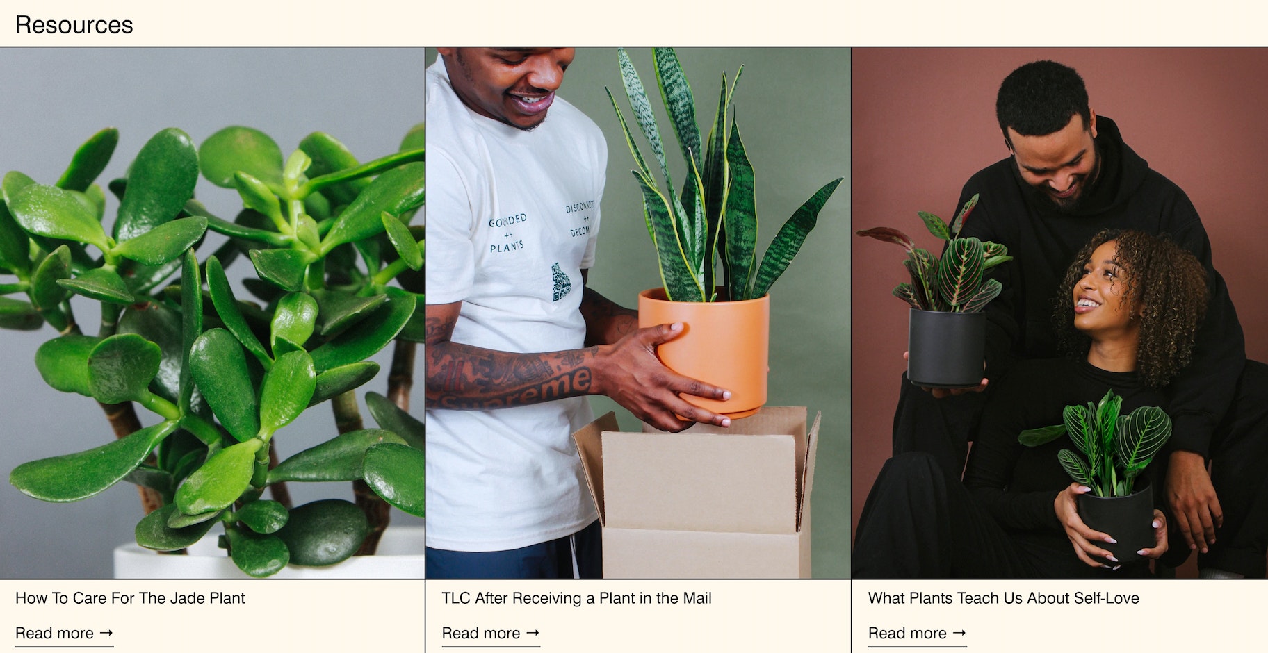 区分你的植物商店从其他网站出售植物很大程度上取决于品牌.想想是什么让你与众不同,并把它作为你的价值主张。例如,在线植物零售商Grounded的品牌根植于植物为日常生活带来正念与和平的力量——这一主张贯穿始终其网站上还有营销文案。