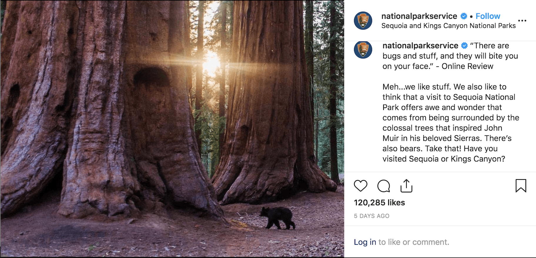 国家公园管理局有一种非常有趣的方式来“倾听”负面评论。浏览他们的各种社交媒体账户,你会看到大量的帖子突出了这些荒谬的评论,以及来自NPS的信息评论。