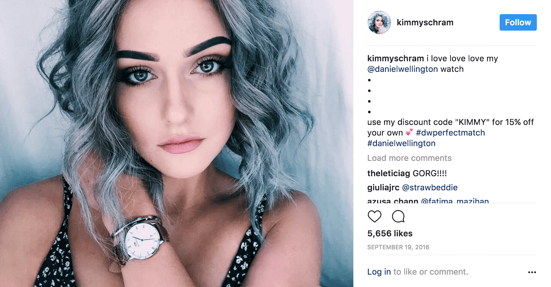 如果你正在寻找一个成功运营Instagram网红活动来提高品牌社会认知度的品牌,丹尼尔惠灵顿是最好的。他们经常接触不同领域的有影响力的人,给他们免费的产品,作为回报,让他们发布一张照片和他们独特的折扣代码。随着他们接触到各种各样的有影响力的人,他们正在向一个全新的潜在客户银行开放自己的品牌,这反过来又增加了他们的社会证明。