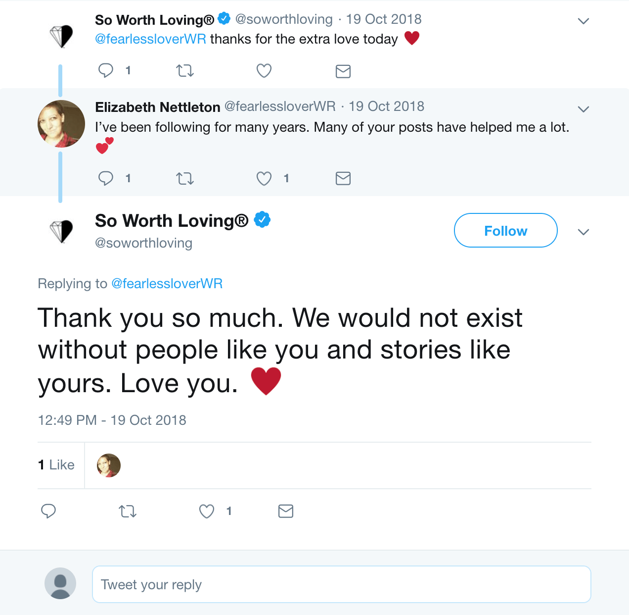 在下图中,So Worth Loving特意与一位推特粉丝建立了个人联系。