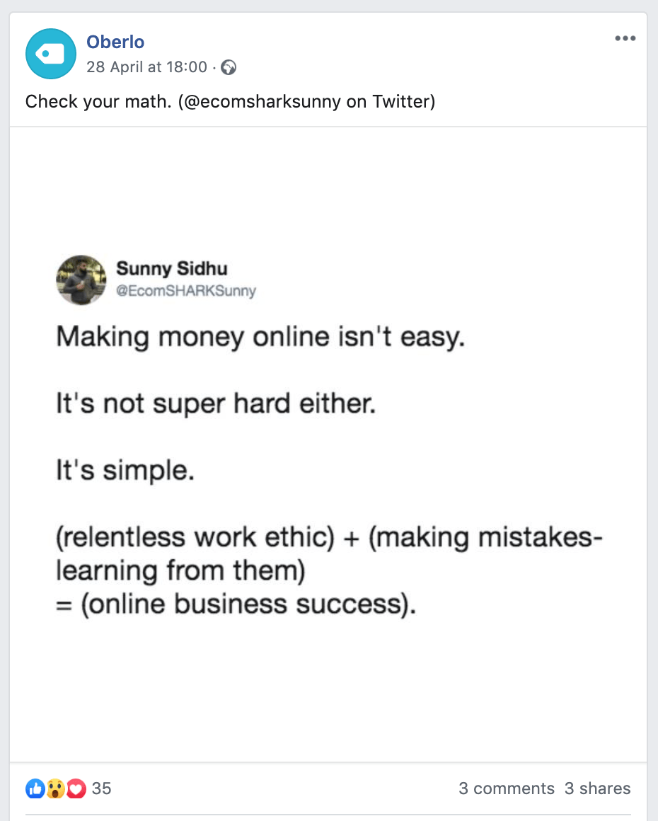 因此,社交商务通常涉及到以下工具Facebook的商店,Instagram商店,以及像下图这样的购物帖子。