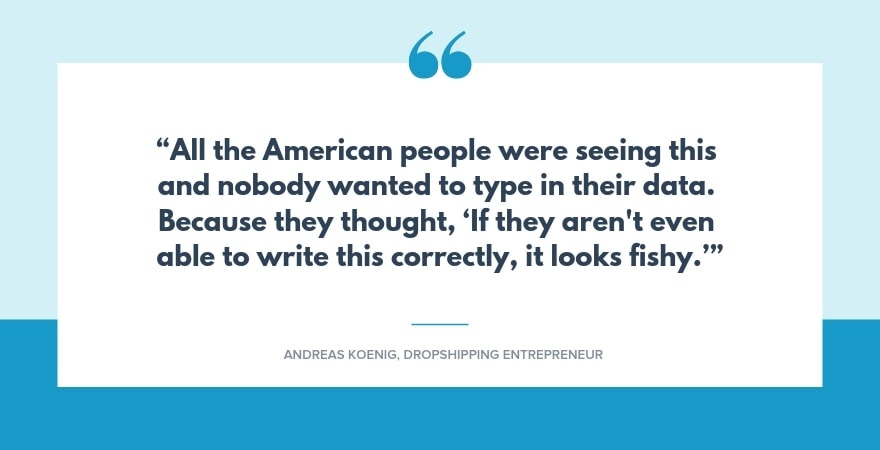 亚历山大记得那个晚上,他发现了泰po on their website, in a form on their product page. “We wrote ‘tipe’ instead of ‘type’ for a custom field,” he says. “All the American people were seeing this and nobody wanted to type in their data. Because they thought, ‘If they aren’t even able to write this correctly, it looks fishy.’”
