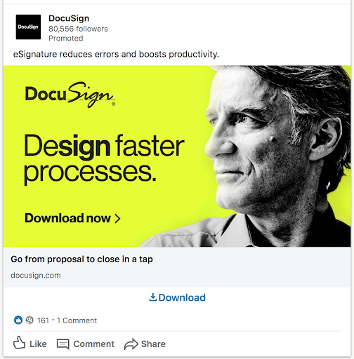 与其他显示在页面顶部或侧边栏的LinkedIn广告不同,赞助内容的优势来自于它在受众新闻提要中的原生位置。