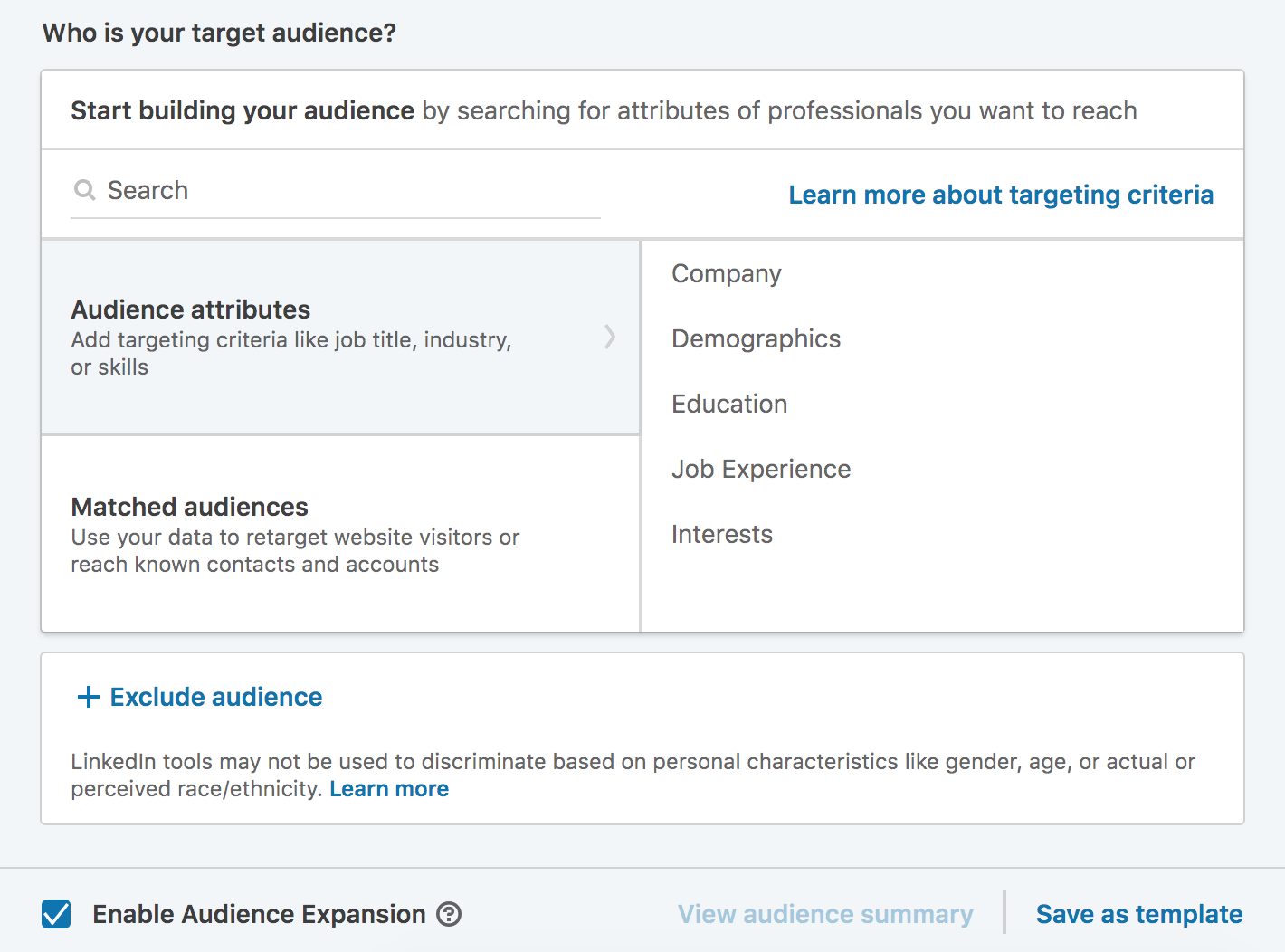 当你投放展示广告时,LinkedIn让品牌有权为看到广告的人的类型设置参数。
