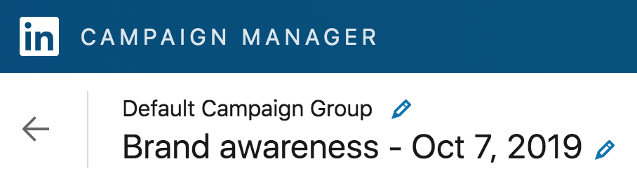 现在,你需要给你的LinkedIn广告活动起一个名字,并把它分配给一个活动组。