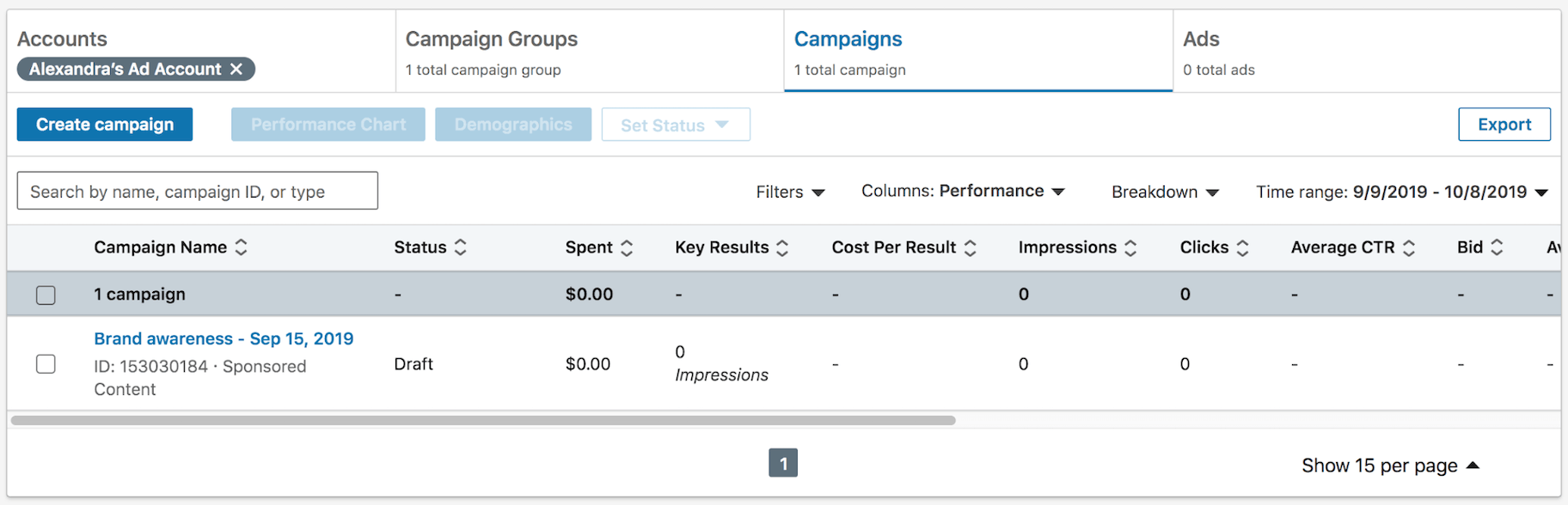 要做到这一点,请在LinkedIn Campaign监控仪表板中跟踪您的进度。