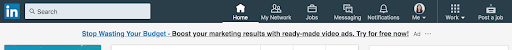 LinkedIn显示广告也可以放在顶部,就像横幅广告一样。在这个例子中,促销正在宣传他们的视频营销服务。