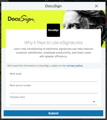 Lead gen表单是建立电子邮件列表的好方法,你可以在LinkedIn的重新定位、电子邮件营销和其他目标营销中使用它。