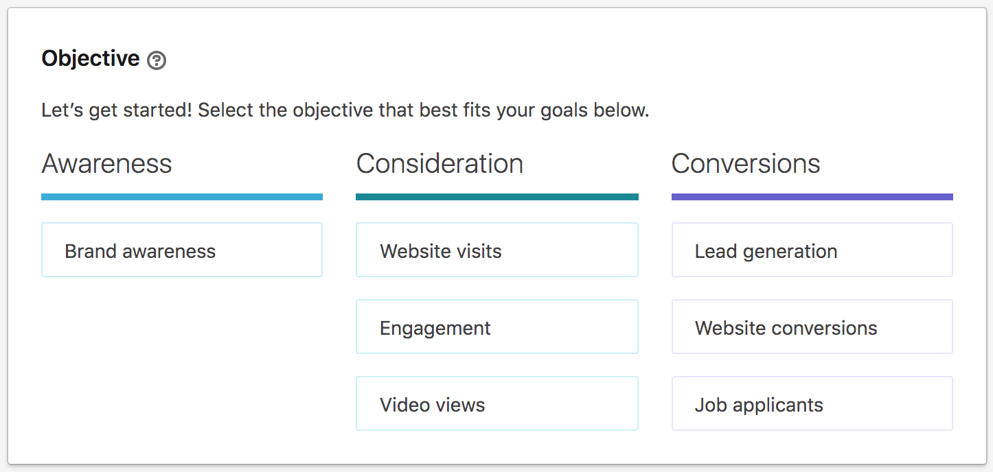 目标让你走上正轨,并确保你有一个客观的方法来衡量进步和成功。当谈到LinkedIn广告时,首先要考虑你支持的业务目标。