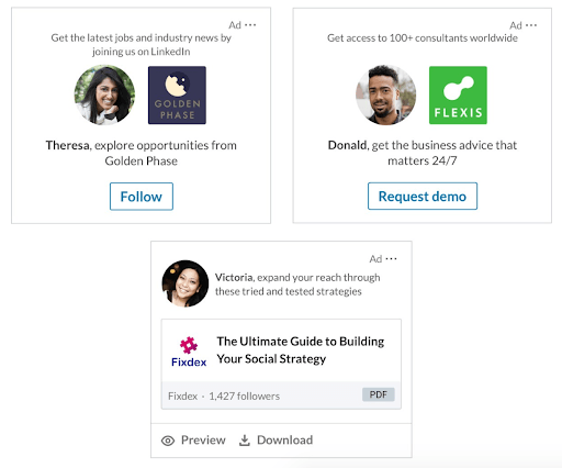 LinkedIn的动态广告会根据用户的不同而变化。他们非常有针对性,使用个人资料和其他相关数据来传递个性化信息。