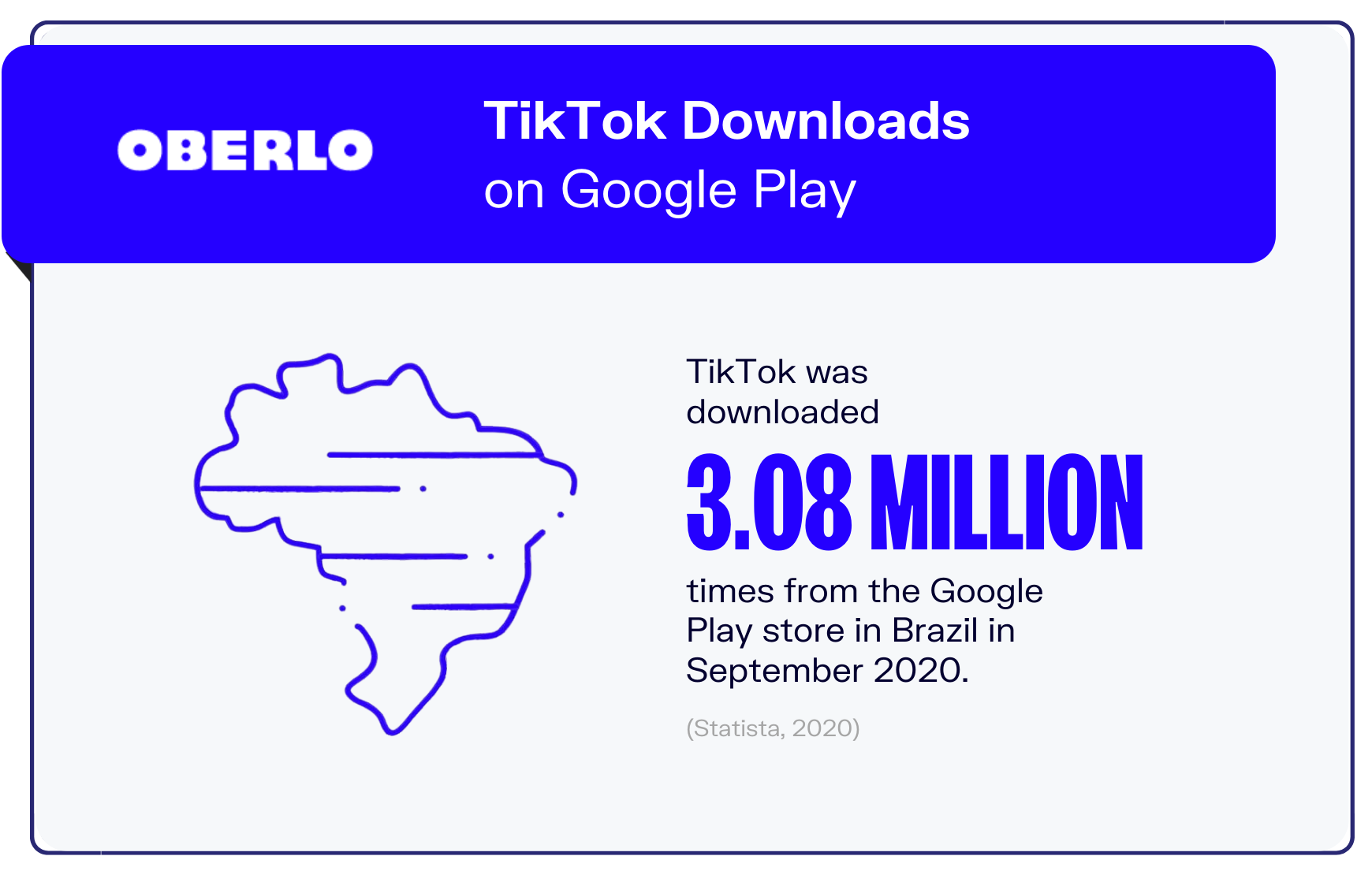 最新数据显示,2020年第三季度末,TikTok在南美特别受欢迎。该应用程序是从谷歌Play商店下载的308万年仅在9月份,巴西的次数就超过了1倍(Statista, 2020年)。