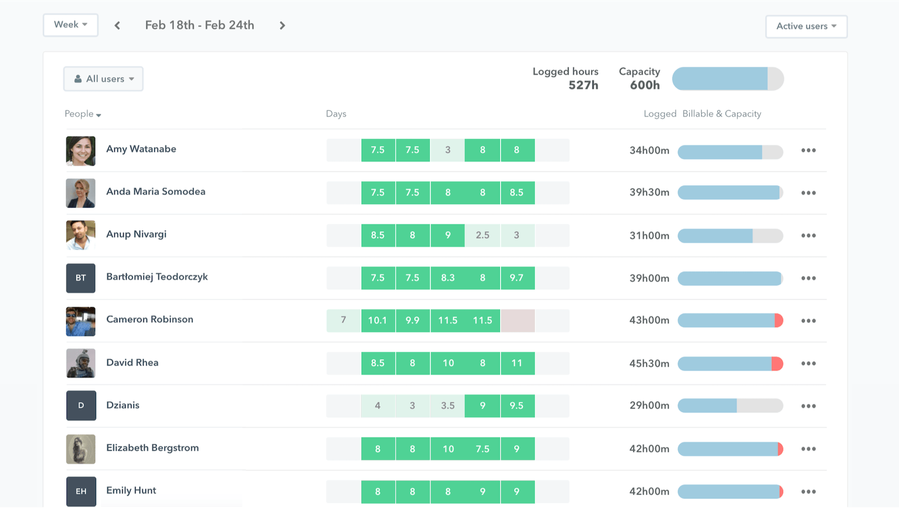 在资源计划方面,Everhour将允许您分配项目应该花费多少小时,并在接近阈值时提醒您。