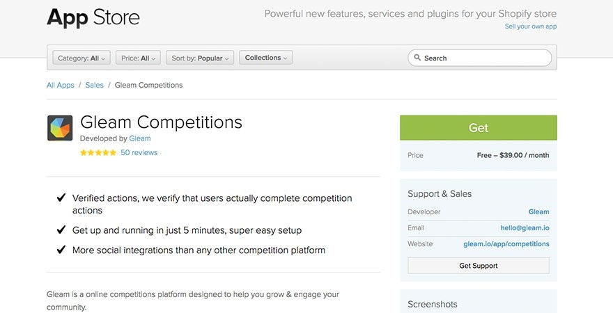 线是一个伟大的竞赛工具,允许您快速设置竞赛。Shopify应用程序集成了几个社交网络,Disqus评论,并包括病毒式分享。你也可以建立你的电子邮件列表。