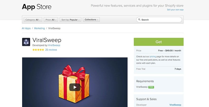 ViralSweep是一个伟大的比赛,抽奖和赠品应用程序。通过运行这个应用程序的比赛,你可以增加你的电子邮件列表和社交媒体的关注,这可以导致长期增加销售。这款应用可以收集电子邮件,为评论、点赞、网站访问等社交活动提供积分。如果你有一个带有网站访问选项的重定向广告,你可以在比赛结束前立即向参赛者重新营销,这可能会增加你的销售额。当谈到选择赢家时,只需简单地点击一下。ViralSweep还包括一个规则模板,以便您可以确保您的指导方针是合法的。