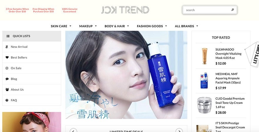 Jck趋势顾客满$10可获赠3个免费样品,给顾客带来惊喜。顾客往往喜欢免费赠品。他们通常也喜欢尝试新产品。最小购买量有助于提高平均订单价值。然而,它也刺激了购买。当顾客收到他们的包裹,发现里面有一些额外的好东西时,这也是一个惊喜。