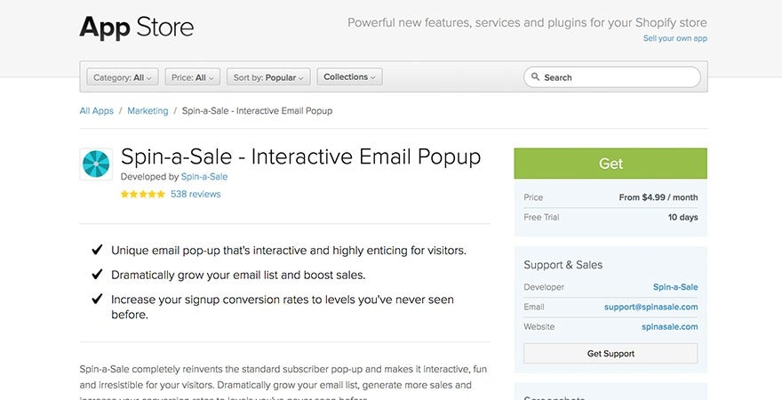 旋转销售是一个旋转应用程序,为客户提供折扣,当他们表示有意退出你的网站。您的商店访客需要添加他们的电子邮件地址,以便旋转转轮。一旦他们旋转转轮,转轮将降落在一个折扣代码,客户可以使用他们的购买。这个游戏化应用程序可以用来提高转化率。
