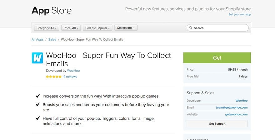 退出意图游戏化应用越来越受欢迎。许多品牌将购物体验游戏化,要求顾客填写电子邮件地址才能获得折扣。一定要把折扣定在你的企业可以承受的价格上。如果你提供的折扣太大,可能会侵蚀你的产品利润,影响你的长期业务。这些应用程序最适合那些努力获得转化的新商店。