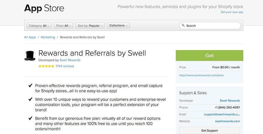奖励和推荐通过Swell,你的客户可以通过喜欢你品牌的Facebook页面、最低消费金额和购买多种产品来赚取积分。然后,顾客可以兑换积分以获得折扣和免费礼品。